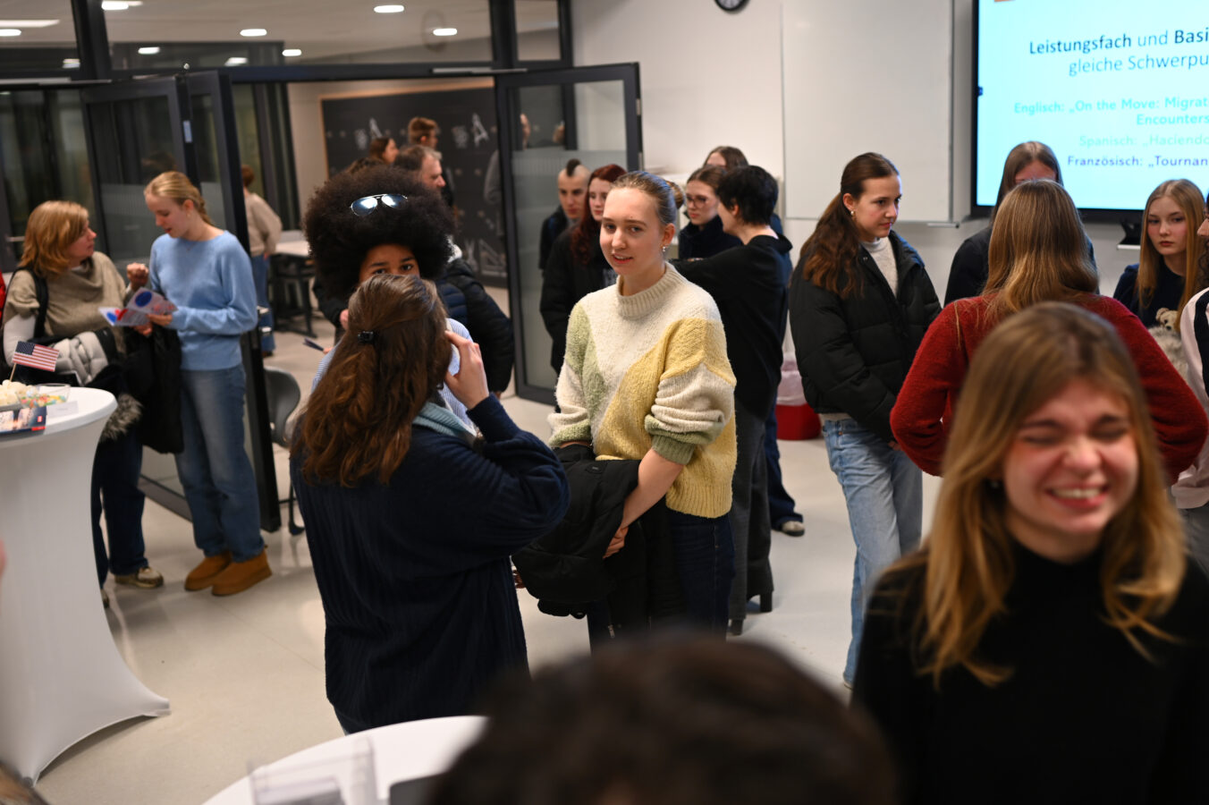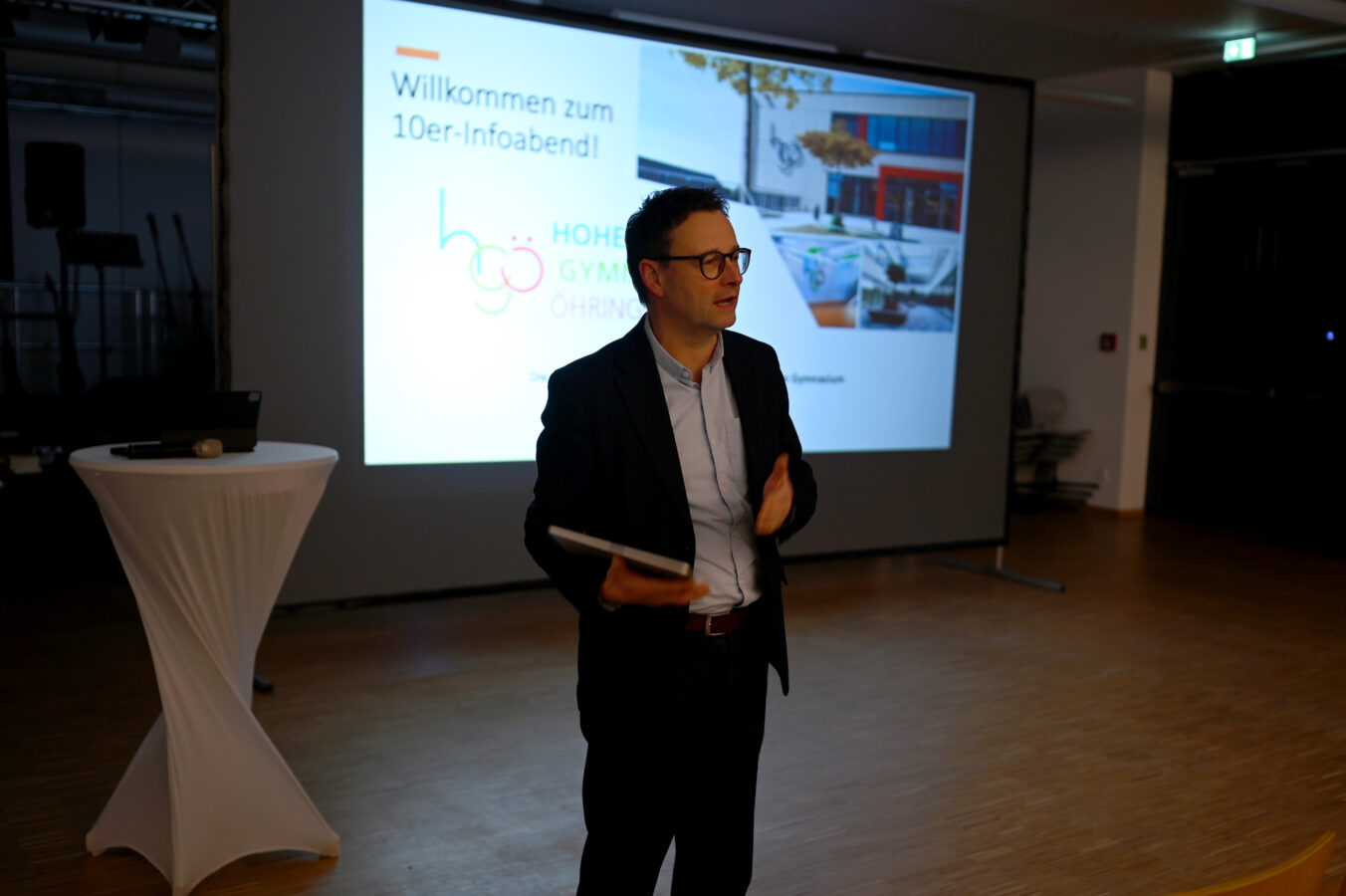 Am HGÖ bleiben? Eine Ausbildung angehen? An ein berufliches Gymnasium wechseln? Diese und ähnliche Fragen stellen sich viele Schülerinnen und Schüler der 10. Klassen. Um zu zeigen, was das HGÖ zu bieten hat, gab es auch in diesem Jahr wieder einen Info-Abend über die Oberstufe am HGÖ. Welche Fächer gibt es dann, als Leistungsfach und als Basisfach? Welche Leistungsfachkombinationen sind möglich? Was unterscheidet die Kursstufe von den „normalen“ Klassenstufen? Diese und weitere Fragen wurden an diesem Abend geklärt – zunächst informierten Herr Schuhmacher und Frau Burger allgemein über die Oberstufe am HGÖ, anschließend konnte sich die Stufe an den einzelnen Informationsständen wie bei einer Messe über Sprachen, Naturwissenschaften, Sport oder Gesellschaftswissenschaften informieren. Besonders die „Orchideenfächer“, also die freiwilligen Wahlfächer, stießen auf reges Interesse, etwa die Kurse Literatur und Theater, Psychologie oder Philosophie.