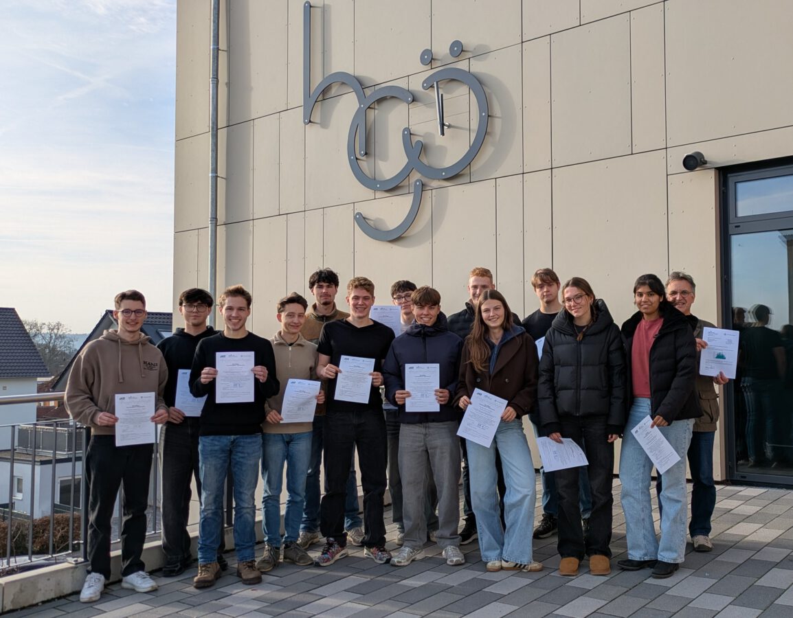 Von den aktuell 15 Teilnehmern konnten elf Schüler die Zertifikatsklausur sehr erfolgreich absolvieren und die zugehörigen Bestätigungen vor Weihnachten entgegennehmen: