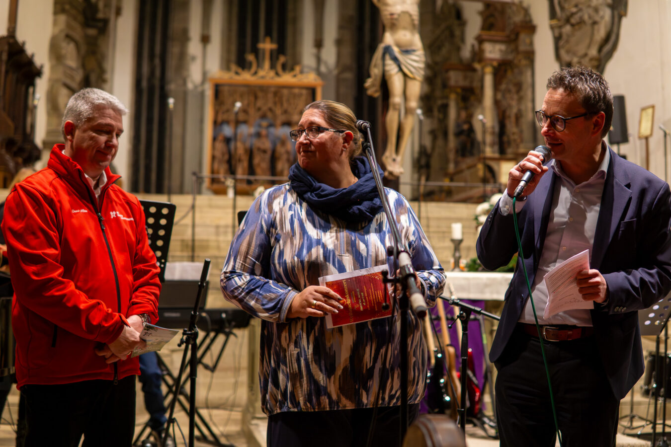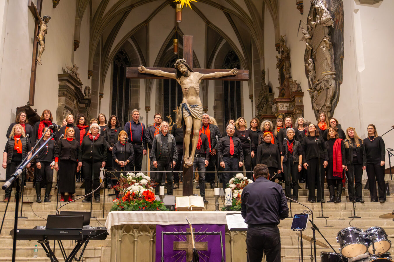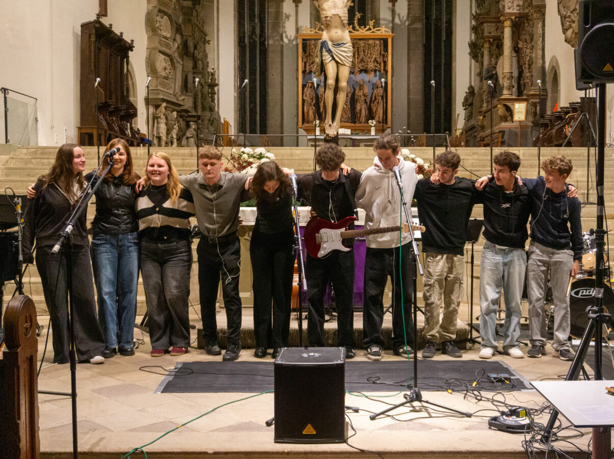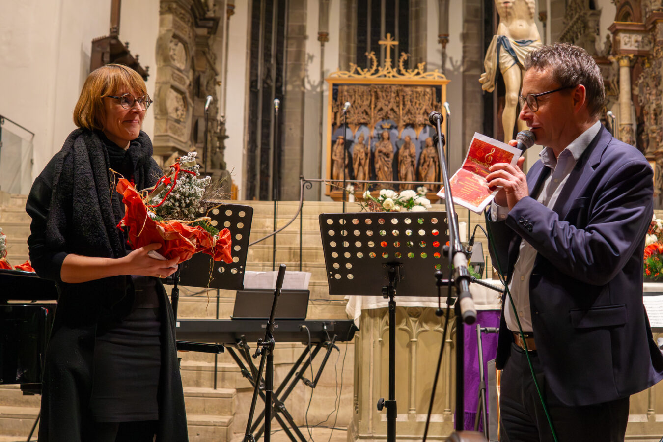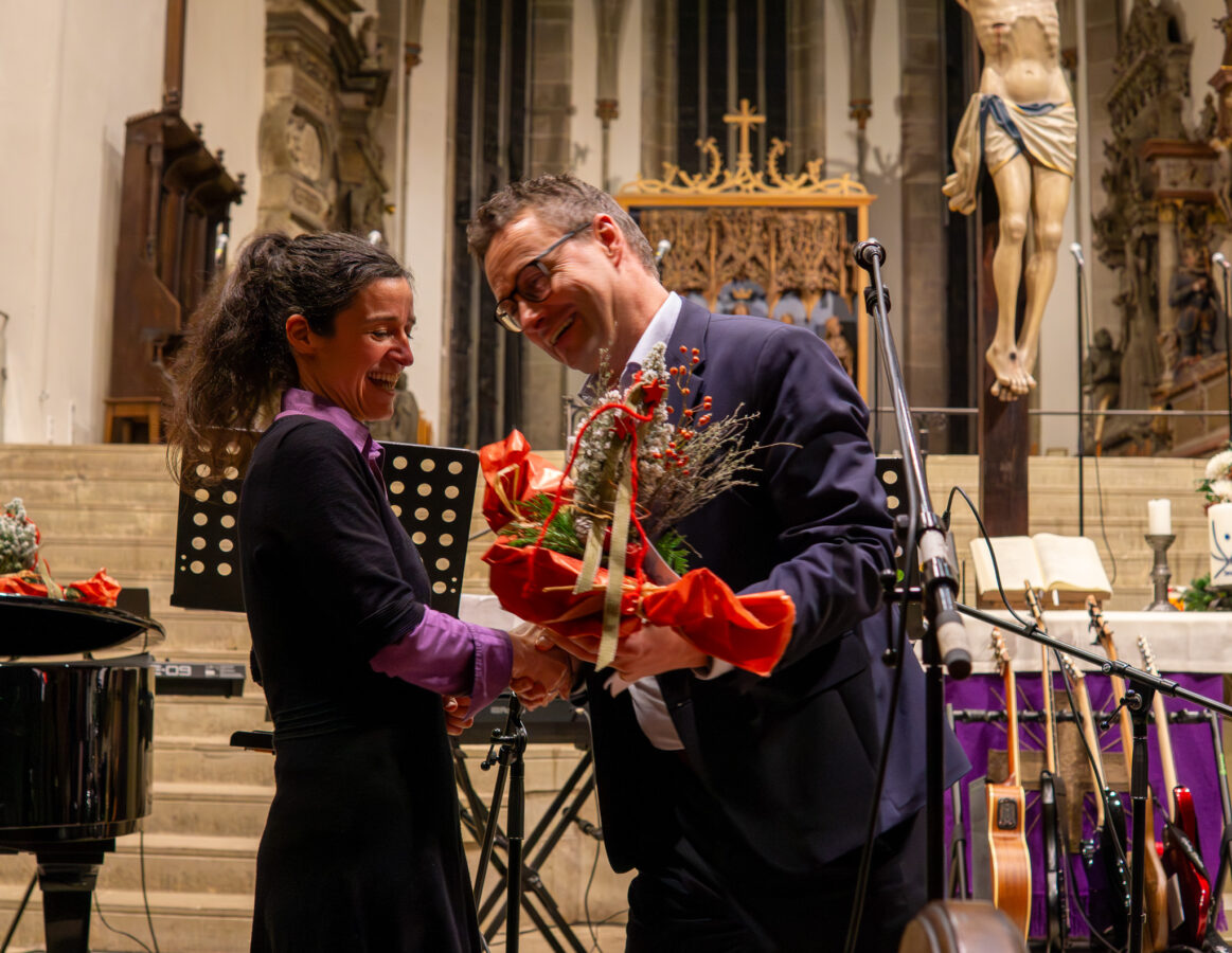 Zum Abschluss wurde „Oh du Fröhliche“ von allen Beteiligten und dem Publikum gemeinsam gesungen – in der voll besetzten Stiftskirche und mit Orgelbegleitung ein beeindruckendes Klangerlebnis, wie man es sonst wohl nur an den Weihnachtsgottesdiensten erleben kann.