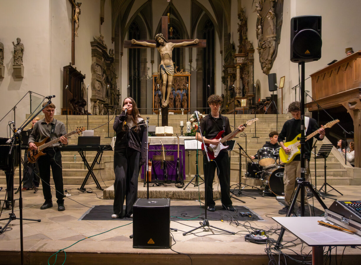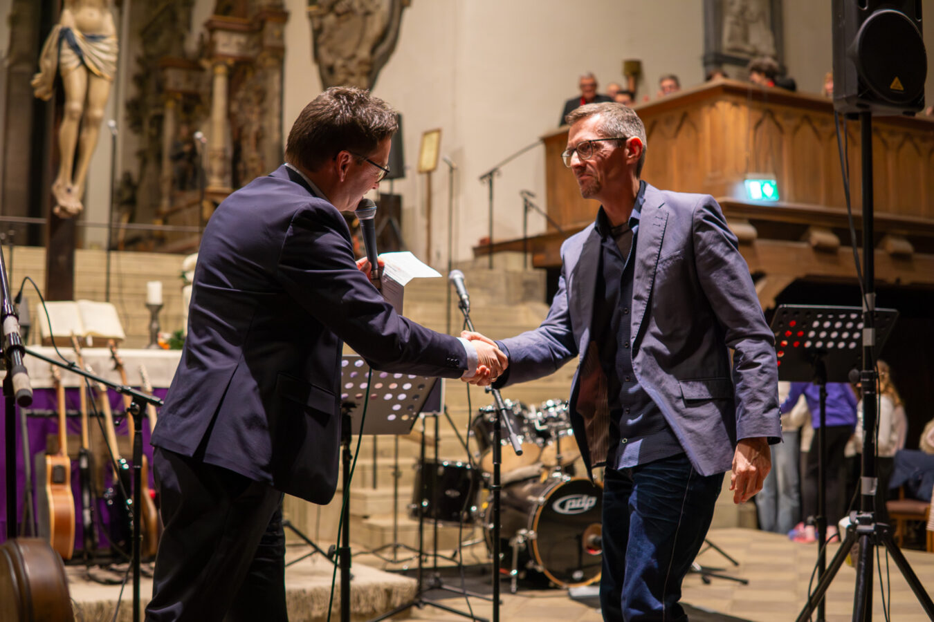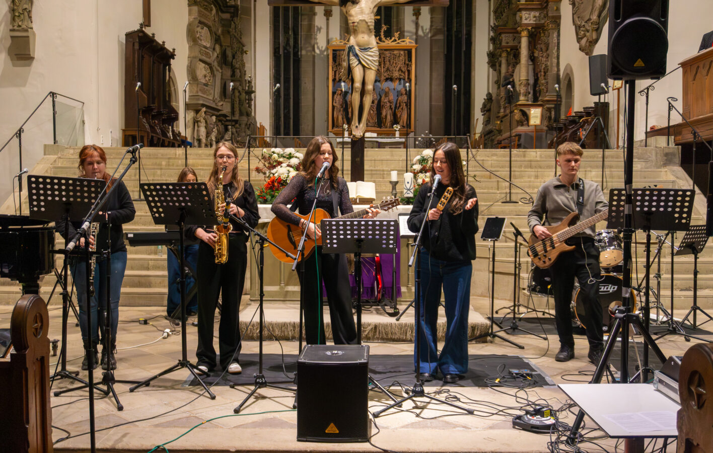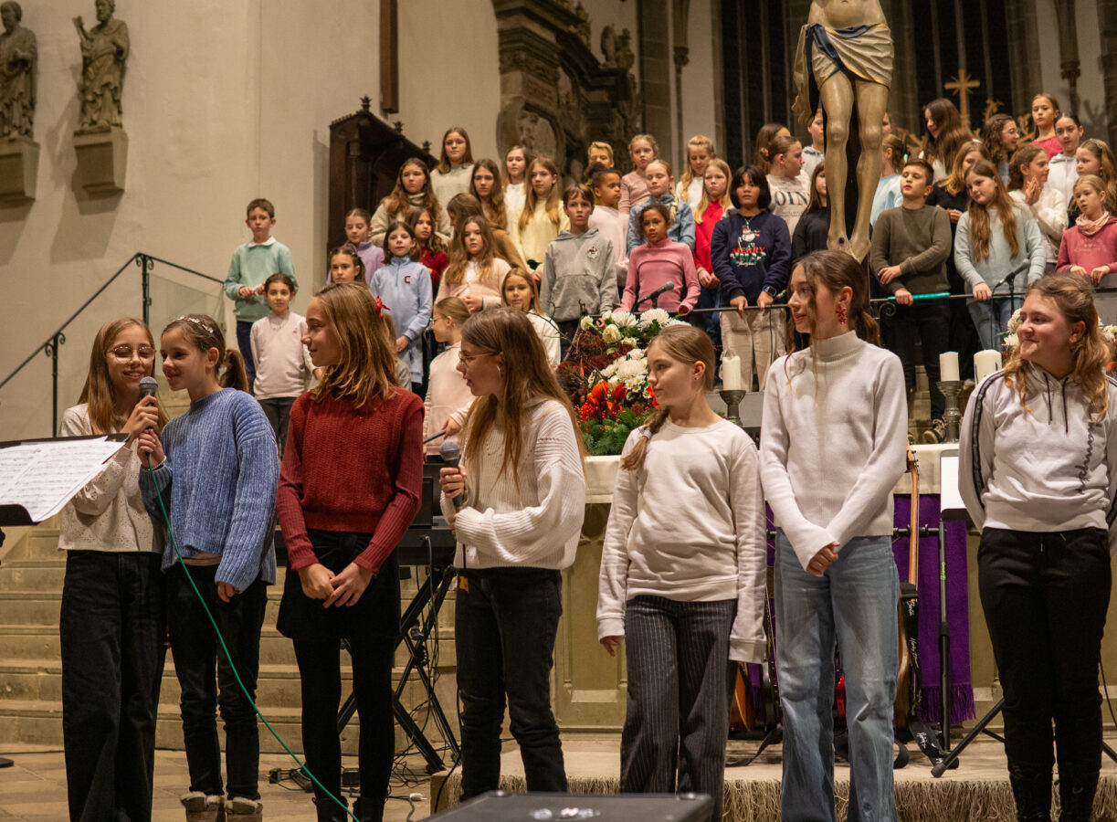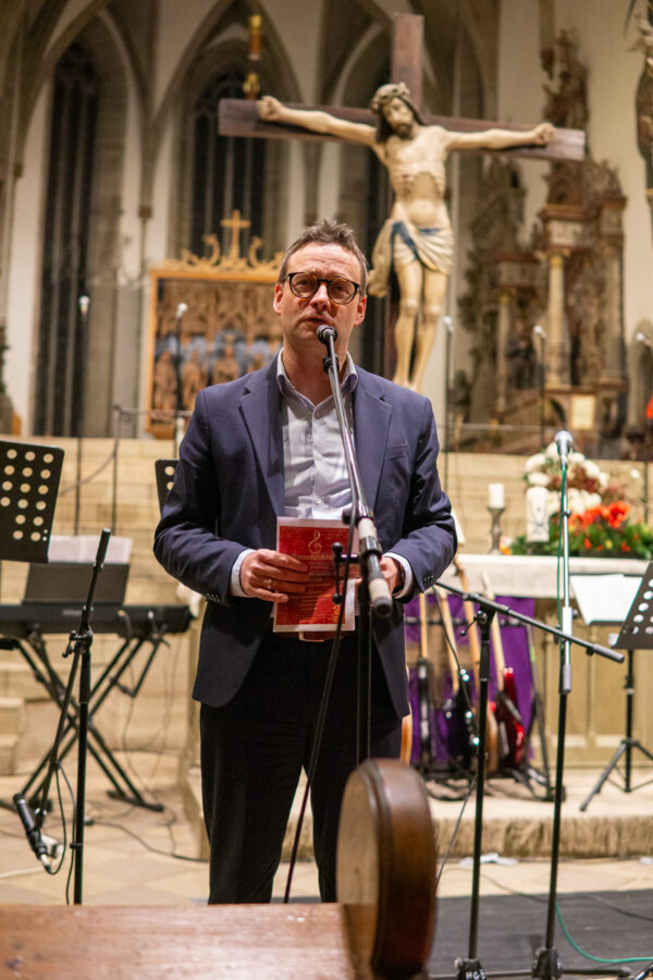 Zum Abschluss wurde „Oh du Fröhliche“ von allen Beteiligten und dem Publikum gemeinsam gesungen – in der voll besetzten Stiftskirche und mit Orgelbegleitung ein beeindruckendes Klangerlebnis, wie man es sonst wohl nur an den Weihnachtsgottesdiensten erleben kann.